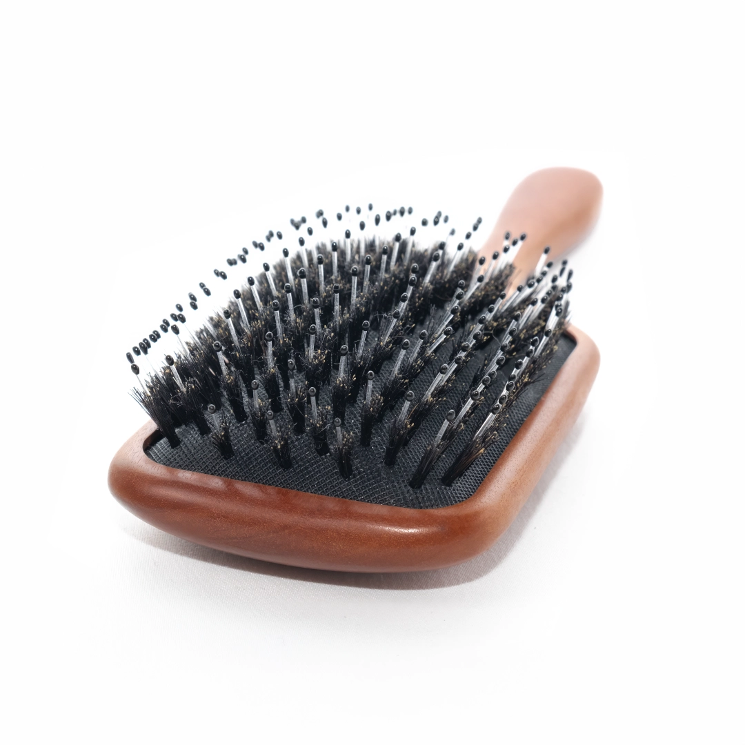 豬鬃毛能將頭皮天然的油脂均勻帶至髮尾,形成自然光澤保護層;